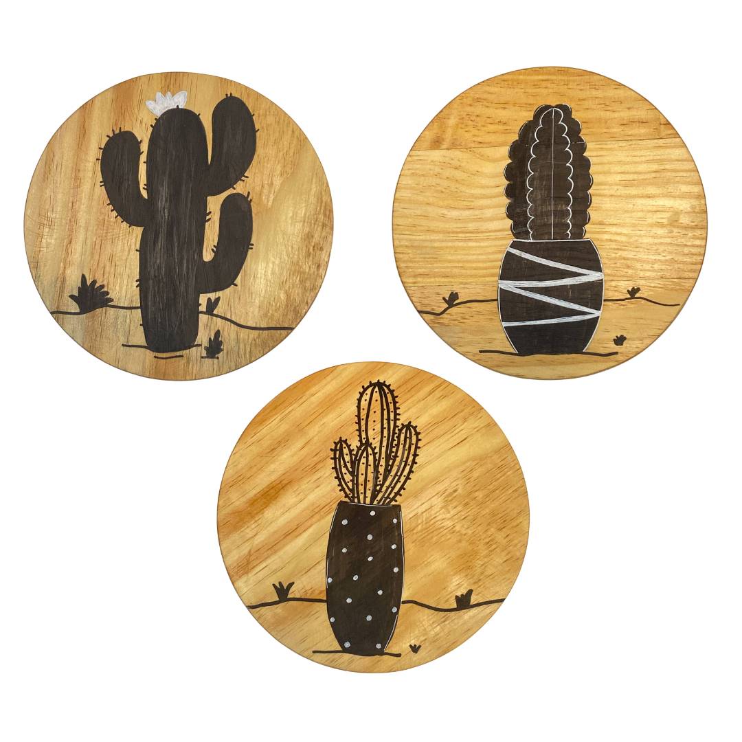Placa em madeira Pinus, medindo 20cm de diâmetro x 02cm de espessura.