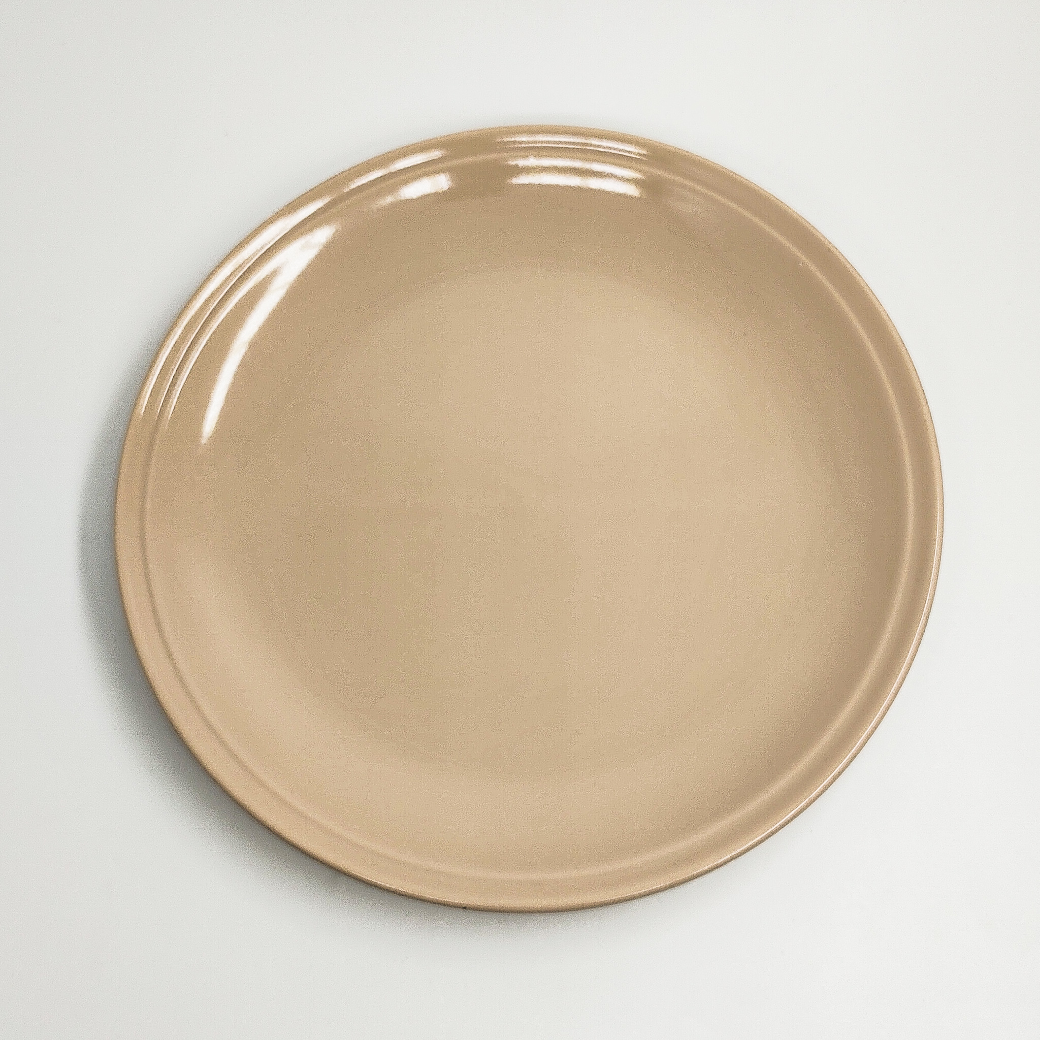 Prato Raso Rosé em cerâmica, com detalhes na borda, charmoso para compor uma mesa posta.